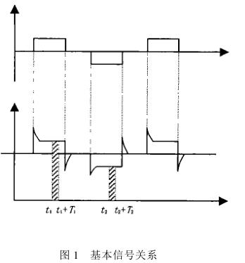 ②正負勵磁下的同相位采樣。圖1 是對應低頻矩形波勵磁形式下的典型電勢信號形式,按上述關系在一個勵磁周期下 ,若假設 t 1 和 t 2 點為工頻干擾的等效干擾點 , 且采樣寬度 T =T 1 =T 2 ,則 e ab 的基本算式為