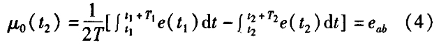 冷卻水流量計一般都采用工頻交流電源供電,其電源電壓的幅值和頻率的變化都會給冷卻水流量計帶來電源性干擾噪聲。對電源電壓的幅值變化,因采用多級集成穩(wěn)壓,一般而言電源電壓的幅值變化對電磁流量的測量精度影響不大。當(dāng)電源電壓的頻率波動時,雖然其波動范圍有限,但對冷卻水流量計測量精度影響較大。為了解決工頻干擾問題,實現(xiàn)對流體流速感應(yīng)電勢e柚信號的準(zhǔn)確測量,需利用以下基本關(guān)系:①勵磁周期為工頻周期的整數(shù)倍,即勵磁頻率為50/nHz(n為偶數(shù));②正負(fù)勵磁下的同相位采樣。圖2是對應(yīng)低頻矩形波勵磁形式下的典型電勢信號形式,按上述關(guān)系在一個勵磁周期下,若假設(shè)t。和t:點為工頻干擾的等效干擾點,且采樣寬度T=T1=T2,則e –ab的基本算式為:,