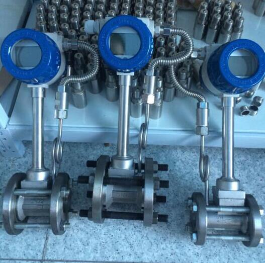 2、溫度補(bǔ)償一體型渦街流量計還帶有溫度傳感器,可以直接測量出飽和蒸汽的溫度并計算出壓力,從而顯示飽和蒸汽的質(zhì)量流量。