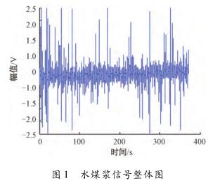 針對(duì)暖通中央空調(diào)管道水流量計(jì)測(cè)量水煤漿時(shí)出現(xiàn)較大波動(dòng),甚至回零這一問(wèn)題,特去某煤化工企業(yè)甲醇分公司進(jìn)行現(xiàn)場(chǎng)數(shù)據(jù)采集。該公司所使用的對(duì)置式四噴嘴氣化有4個(gè)噴嘴,噴嘴管道口徑為125mm,管中水煤漿流量基本穩(wěn)定在19m³/h(流速約為0.48m/s)。每條噴嘴煤漿線上安裝了3臺(tái)暖通中央空調(diào)管道水流量計(jì),每臺(tái)暖通中央空調(diào)管道水流量計(jì)由傳感器和變送器兩部分組成。選擇其中1條水煤漿管線上的1臺(tái)暖通中央空調(diào)管道水流量計(jì)進(jìn)行數(shù)據(jù)采集,因?yàn)樵撆_(tái)暖通中央空調(diào)管道水流量計(jì)測(cè)量結(jié)果波動(dòng)大,甚至出現(xiàn)回零的現(xiàn)象。將課題組研制的基于DSP的電磁流量變送器的信號(hào)線和勵(lì)磁線接到該電磁流量傳感器的電極和勵(lì)磁線圈上,組合成完整的暖通中央空調(diào)管道水流量計(jì),進(jìn)行水煤漿數(shù)據(jù)采集。使用的電磁流量變送器是以TI公司DSP芯片TMS320F28335為核心,采用高頻勵(lì)磁方案,其硬件主要包括勵(lì)磁控制系統(tǒng)和信號(hào)采集處理系統(tǒng),具體的模塊有勵(lì)磁驅(qū)動(dòng)模塊、信號(hào)調(diào)理采集模塊、信號(hào)處理控制模塊、人機(jī)接口模塊、通信模塊及電源管理模塊。信號(hào)調(diào)理采集模塊中的調(diào)理電路對(duì)一次儀表輸出的信號(hào)進(jìn)行放大和濾波,截止頻率是2kHz,放大倍數(shù)約為230倍。通過(guò)NI公司USB-6216型號(hào)的數(shù)據(jù)采集卡進(jìn)行數(shù)據(jù)采集,把調(diào)理電路的輸出端連接到數(shù)據(jù)采集卡的一個(gè)差分輸入端,并設(shè)置數(shù)據(jù)采集卡工作在差分的測(cè)量模式,設(shè)置采集卡的采樣頻率為10kHz。采集多組水煤漿信號(hào)數(shù)據(jù),每組數(shù)據(jù)的時(shí)間長(zhǎng)度為5min。