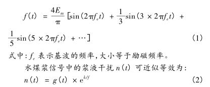 式中:g(t) 表示漿液信號(hào)的幅值,特點(diǎn)為隨機(jī)跳變的信號(hào),波動(dòng)比較大,f表示頻率。漿液噪聲在低頻段幅值比較大,隨著頻率的增加,漿液噪聲的幅值在減小。那么,傳感器輸出的信號(hào)s(t) 形式為:
