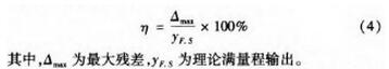本文采用*小二乘法進(jìn)行線性度評定,即擬合直線為*小二乘直線。*小二乘直線保證了傳感器至極輸出的平均值對它的偏差的平方和為*小,即可以保證擬合直線得到的結(jié)果與實測結(jié)果之間的偏差很小,更具可靠性。根據(jù)定義,線性度即是校準(zhǔn)曲線對這條*小二乘擬合直線的偏離程度。
