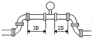 再將兩臺口徑為φ50mm和φ40mm高爐煤氣流量計配裝整流器后,分別安裝在φ80mm工以管道上,且儀表上游尉為一個平面內(nèi)兩個90°彎頭,變徑整流器前端與*二個90°彎頭距離為3倍工藝管內(nèi)徑長段,進行水標定,工藝圖如圖3,實驗數(shù)據(jù)見表2