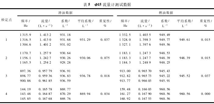 3.2.3Φ15流量計(jì)測(cè)試條件及結(jié)果