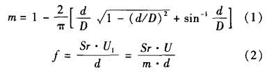 式中:m為漩渦發(fā)生體兩側弓形面積與管道橫截面面積之比;D為表體通徑,~;d為漩渦發(fā)生體迎面寬度,~;f為漩渦的發(fā)生頻率,Hz;U:為漩渦發(fā)生體兩側平均流速,耐s;sr為斯特勞哈爾數(shù);U為被測介質來流的平均速度,耐s。管道內(nèi)體積流量q。為: