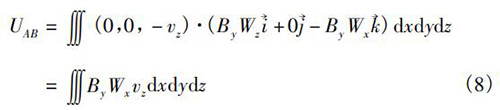 式中V為水泥漿流量計傳感器測量空間;W→為權(quán)函數(shù)。在直角坐標系(x,y,z)中,式(5)可以轉(zhuǎn)換為