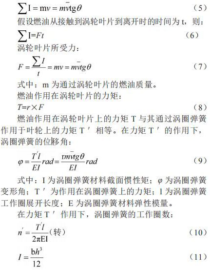假設渦輪固定不動,燃油流過渦輪的葉片時將受到阻力,則當燃油離開渦輪的葉片時,將產(chǎn)生一個切向動量 mv,這個動量即為渦輪獲得沖量 。