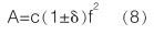 其中 c 為系數(shù), δ 為相對誤差限, 其示意圖如圖 2 所示,圖中實線為幅頻關(guān)系的理論擬合曲線, 而虛線為幅值波動的閾值曲線。根據(jù)實驗的數(shù)據(jù),渦街信號幅值波動的相對誤差為 ±10% 。