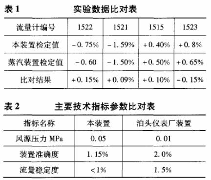 1)對同一臺蒸汽流量計在該裝置上的檢定結(jié)果與蒸汽流量檢定裝置上鑒定結(jié)果的比對如表1所示。該裝置準確度為1.25%。表1所列數(shù)據(jù)為誤差*大值。