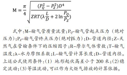 天津 LNG 設(shè)置兩座電磁流量計,單臺設(shè)計處理量 60t/h, 兩臺火炬并列運行,一用一備。自 LNG 儲罐及 BOG 系統(tǒng)來的超壓 BOG 經(jīng) PV 閥后進入火炬氣排放總管,經(jīng)分液罐沉淀 BOG 中夾雜的液滴后進入火炬燃燒放空。 電池供電電磁流量計設(shè)置四級排放,具體設(shè)置如表 1。 2 火炬氣排放量計算方法根據(jù)水平輸氣管流量計算基本公式:
