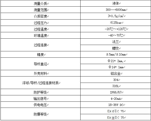 Float-11浮球式液位計技術(shù)參數(shù)表