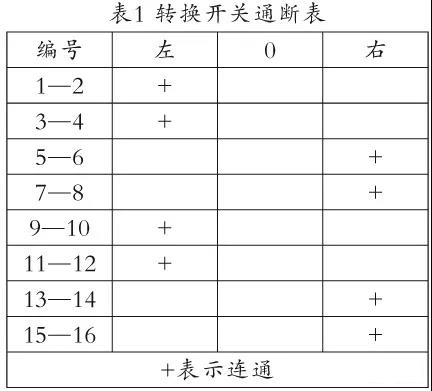 圖4是一款轉(zhuǎn)換開關(guān)的圖形和符號,表1是它在左旋和右旋兩個(gè)部位時(shí)8個(gè)開關(guān)對應(yīng)的通斷情況。