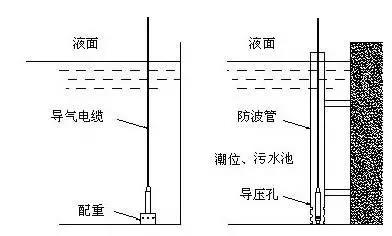 1、纜式投入式液位計(靜壓式水位計)通常投入直徑大于水位計直徑的的PVC管、鋼管,管道固定在水中,不同高度打若干小孔,以便水通暢進入管內(nèi)?;蛘咴诘撞考友b阻尼裝置,以過濾泥沙和消除動態(tài)壓力和波浪對測量的影響。