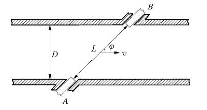 制藥廠污水流量計(jì)為獨(dú)立測(cè)量設(shè)備,由多個(gè)位于管線內(nèi)壁的超聲傳感器組成。傳感器由緊固機(jī)械裝置插入管道中,超聲脈沖被 2 個(gè)傳感器交替地發(fā)射和接收。由于電磁在逆流和順流情況下的傳輸時(shí)間 tu 和 t d 不同,通過(guò)時(shí)差法可以計(jì)算得到流體流速,工作原理如圖 1 所示。制藥廠污水流量計(jì)還可以配置成雙向計(jì)量模式,精度不變。