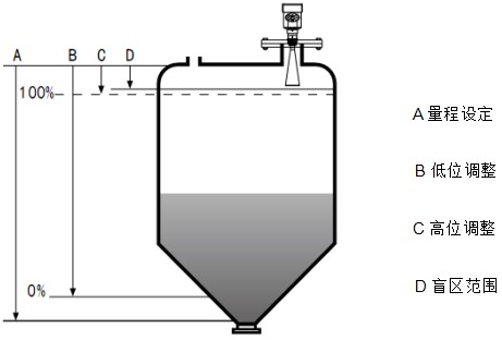 注:使用瀝青液位計時,務(wù)必保證*高料位不能進(jìn)入測量盲區(qū)(圖中D所示區(qū)域)。