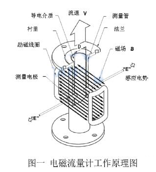 電磁流量計的測量原理是基于法拉*電磁感應(yīng)定律:即導體介質(zhì)在磁場介質(zhì)中切割磁力線運動時在其兩端產(chǎn)生感應(yīng)電動勢。如圖1所示,導電介質(zhì)在垂直于磁場的非磁性測量管內(nèi)流動,與流動方向垂直的方向上產(chǎn)生與流量成比例的感應(yīng)電勢,電動勢的方向按“弗來明右手規(guī)則”,其感應(yīng)電勢E為:E=KBVD式中:E---感應(yīng)電動勢(與流速成正比);K---比例常數(shù);B---磁場強度(線圈電感);V---測量管內(nèi)介質(zhì)的平均流速;D---電極間距(測量管的內(nèi)徑)